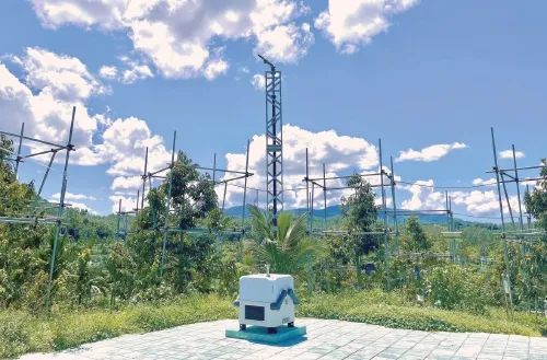 “这块基地面积有570亩,目前主要种植了金枕、干尧、猫山王、黑刺等多个榴莲品种。根据榴莲的生长习性,基地配置了智能巡检无人机、植保无人机、水肥一体化智能灌溉、太阳能虫情测报仪、孢子捕捉仪、人工雨喷洒等一体化智能设备赋能体系,构建了全要素精准感知模式,能够满足榴莲对生长环境的需求。”海南优旗副总经理郎海波介绍。